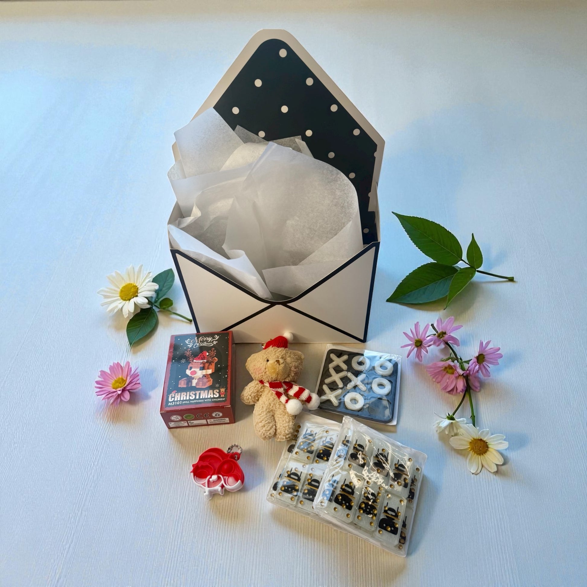 You've got mail! :) This gift box includes a one-of-a-kind robot-themed domino set made of resin. It is a unique, handmade item that has been exclusively added to this curated box.
