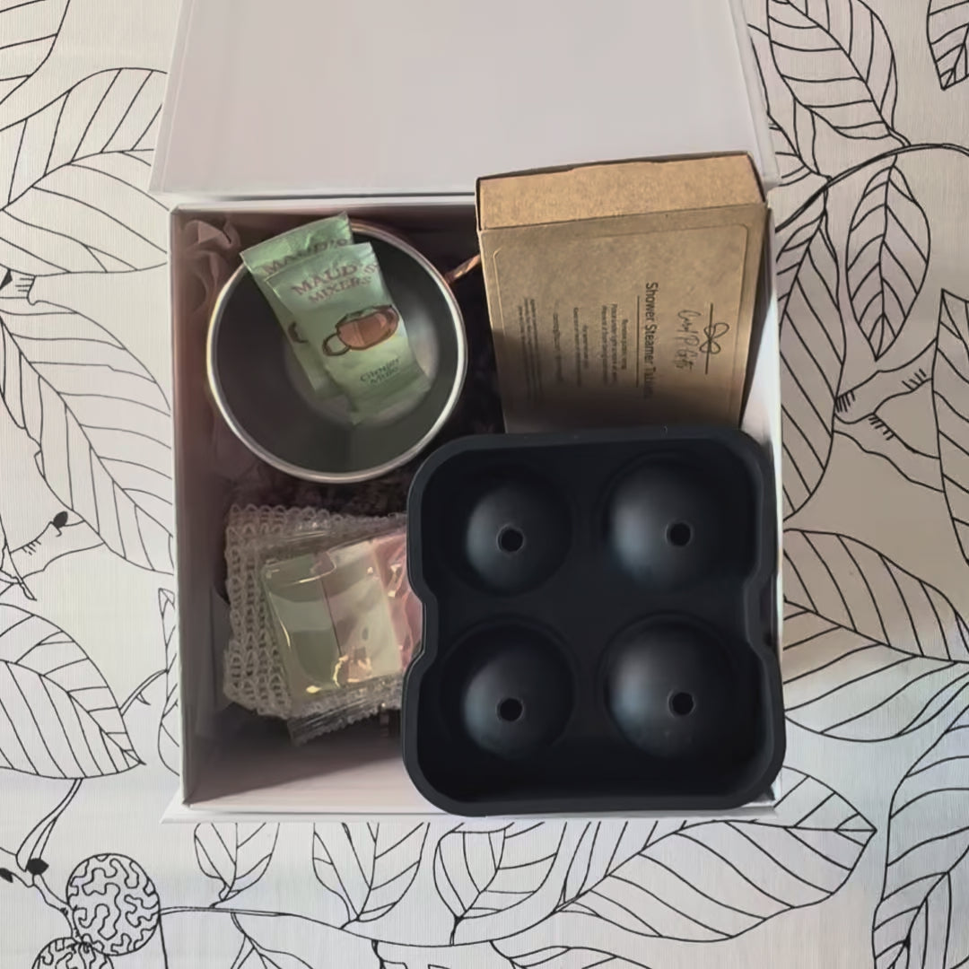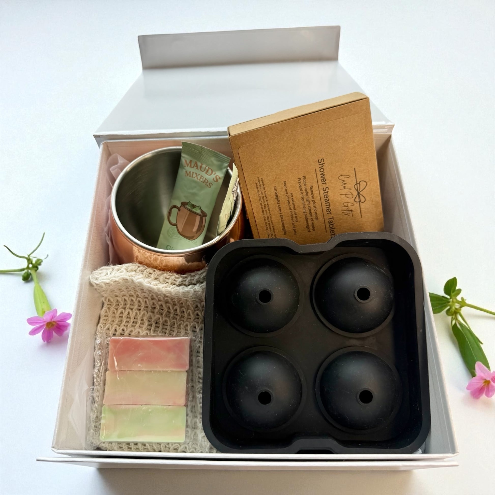 Inside this box, you’ll find everything you need to unwind, refresh, and celebrate life’s little moments. Stir up something special with your Moscow Mule mug and cocktail mixes, and let your worries melt away with a soothing bath.