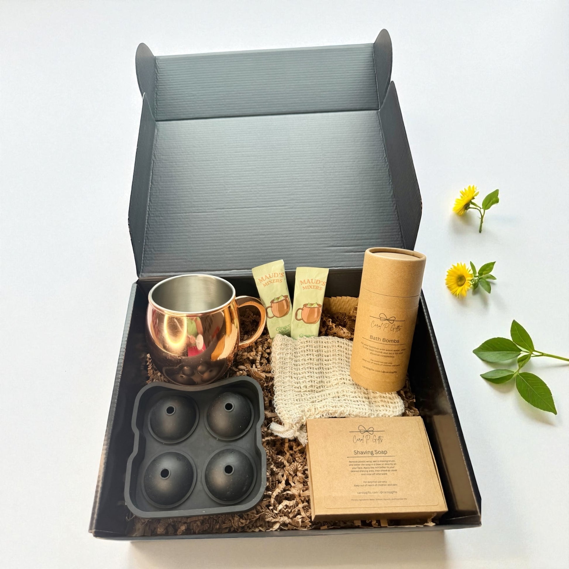 Inside this box, you’ll find everything you need to unwind, refresh, and celebrate life’s little moments. Stir up something special with your Moscow Mule mug and cocktail mixes, and let your worries melt away with a soothing bath.