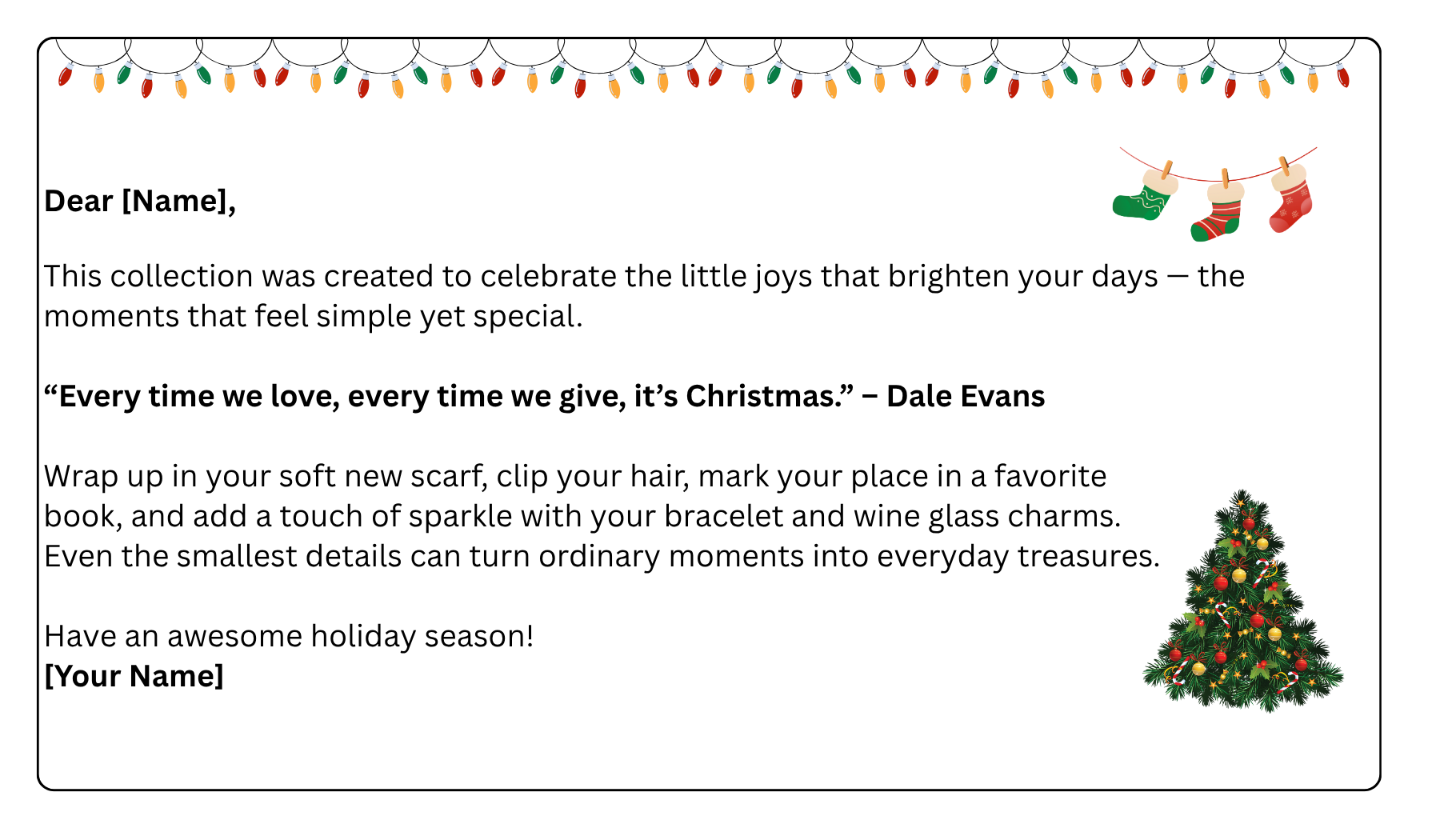 Celebrate the little joys that brighten your days — the moments that feel simple yet special. Wrap up in your soft new scarf, clip your hair, mark your place in a favorite book, and add a touch of sparkle with your bracelet and wine glass charms.